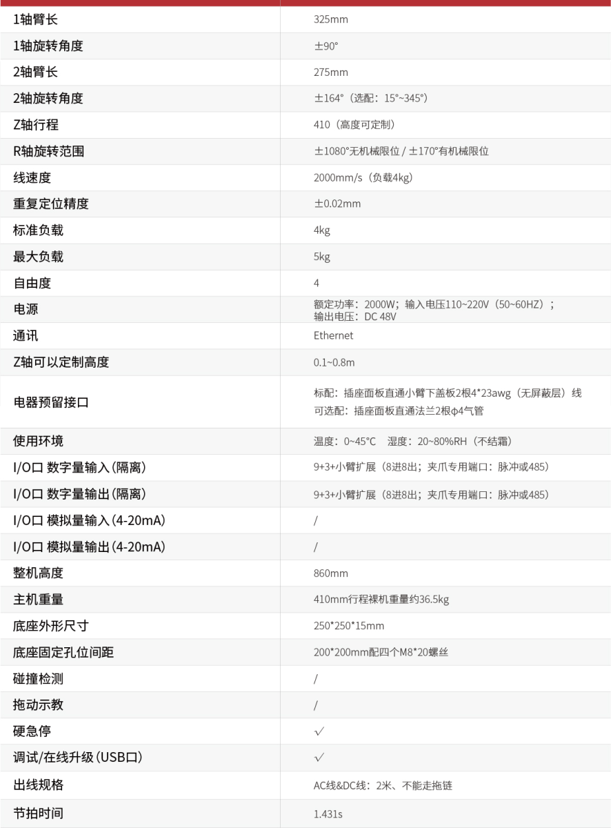 2000mm/s(負載4kg) |